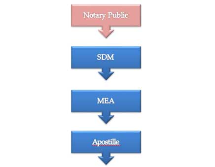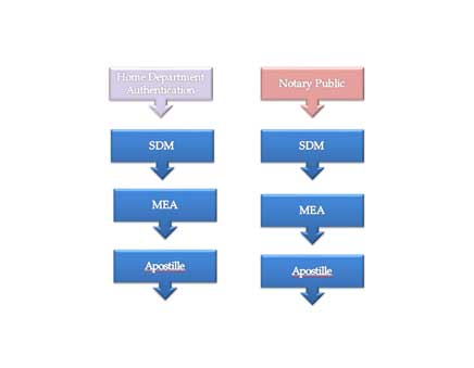 Process2:-SDM Apostille process can take on all educational documents, even on private certificates. Start with Notary public followed by Sub-Divisional Magistrate (SDM). SDM is independent of the state government, however the verification is considered equal to the state level.