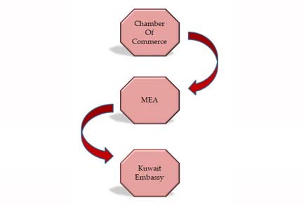 - After completing Chamber of Commerce and MEA attestation the certificate will be attested from Embassy of KUWAIT or Consulate present in India