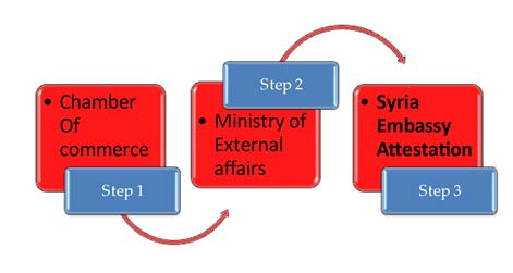 - After completing Chamber of Commerce and MEA attestation the certificate will be attested from Embassy of Syria or Consulate present in India